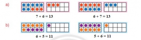 a) 7 + 4 = 7 + 3 + 1 b) 6 + 5 = 6 + 4 + 1