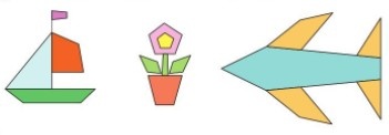 Bạn Voi muốn sơn màu xanh da trời vào các mảnh ghép hình tứ giác. Em hãy chỉ giúp bạn Voi những mảnh ghép hình tứ giác