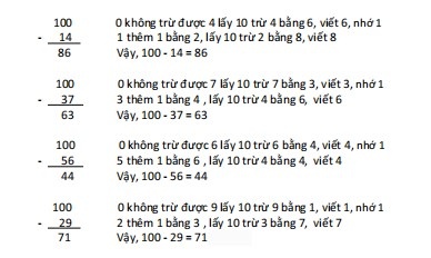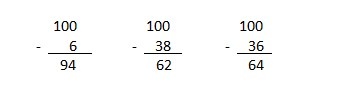 100 - 1 = 99 100 - 6 = 94 100 - 0 = 100