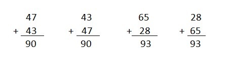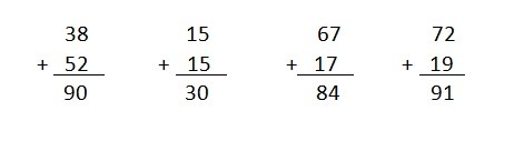 23 + 27 + 1 = 51 45 + 45 + 2 = 92 58 + 12 + 3 = 73 69 + 11 + 4 = 84