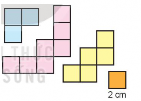Ghép 4 tấm bìa trong hình bên thành một hình vuông. Tính diện tích của hình vuông đó.