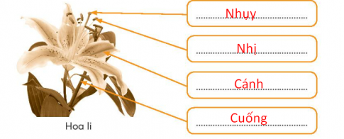 Câu 1: Viết vào chỗ (...) tên bộ phận của các hoa dưới đây