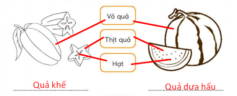 Câu 2. Viết vào chỗ (...) tên và tô màu các quả. Nối các bộ phận chính sao cho phù hợp với vị trí trên mỗi hình