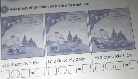 1. Viết phép nhân thích hợp với mỗi tranh vẽ: