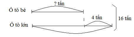 Bài 3: Hai ô tô chuyển được 16 tấn hàng. Ô tô bé chuyển được ít hơn ô tô lớn 4 tấn hàng. Hỏi mỗi ô tô chuyển được bao nhiêu tấn hàng?