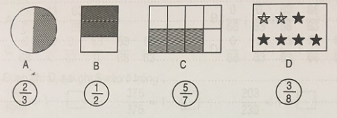 1. Nối mỗi hình với phân số chỉ phần tô đậm của hình đó